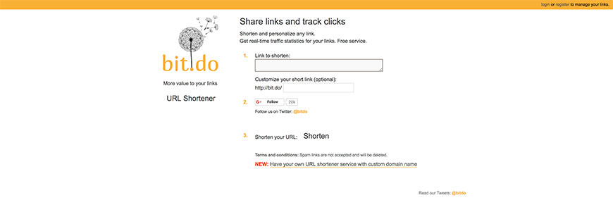 The online URL shortener tool Bit.do is very easy to use. You can use it by signing up or just by going to its homepage and copying and pasting the long link you would like to have shortened. If you sign up for an account, you can also have access to data on how your links are performing and who is using them from where. In addition, you can have your own personal domain that is related to your business. Many URL shorteners have you use their name, which is how they are able to advertise.
