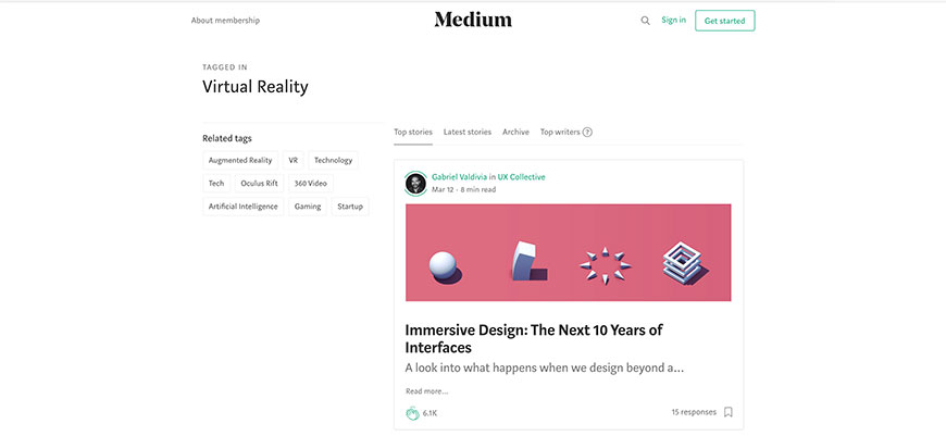 The online publishing platform Medium was launched in 2012 and was developed by Evan Williams. It is now home to hundreds of articles that are written and uploaded by journalists of advanced levels. The available content revolving around VR focus on the user experience (some positive, some negative), VR design principles and using VR as an aid to storytelling, among other things. Though the articles are hosted on Medium, they often connect to other sites where more information can be obtained about that specific topic. The articles, being slightly open in their topic, also have educational components for those looking to develop in the VR world. One of the nicer aspects of using Medium is that some of the authors are also just beginning their research into the world of VR and as such, are documenting the experience for others. The articles are categorized by an estimated time of how long it takes a user to read the article. This way, you can devote a lot or a little bit of time to exploring VR topics. Some of the content providers have been following VR developments since the 1990s and can share how the field has improved but also what steps need to be taken for future development.