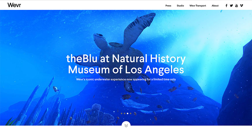 WeVR is a software company founded in 2009 that oversees a VR media players as well as a community of creative designers and engineers. Among the products they offer, there is a VR player that can be used for collaboration (allowing up-and-coming VR content creators to shine) and also software that allows for VR playback. Their network of VR idea-sharing and community building is known as WeVR Transport. It is branded as an immersive experience that offers various shipped VR titles for users to explore. There are two ways to explore the VR content using the downloadable software. One option is a paid, premium account that you can specify use for only mobile or combined PC and mobile access. Their works are supported by the Oculus gear and HTC Vive, with Google Daydream and Oculus Rift to join their ranks at a later time. This is a great option to get the full effect of being placed in a true VR setting. The other option is a free account that can be a good way for a beginner to explore VR content without feeling locked into a contract. The 360 videos they release are created using multiple cameras, from REDs to GoPros, all with the clear intention of creating the best VR environment possible.